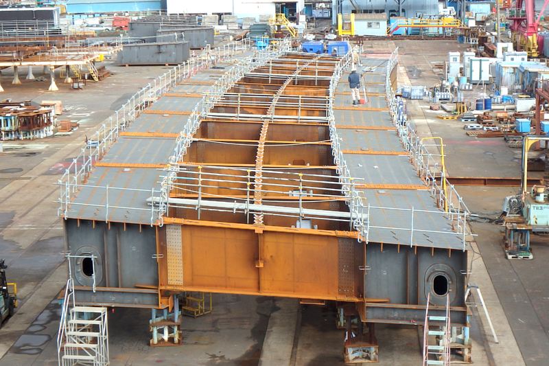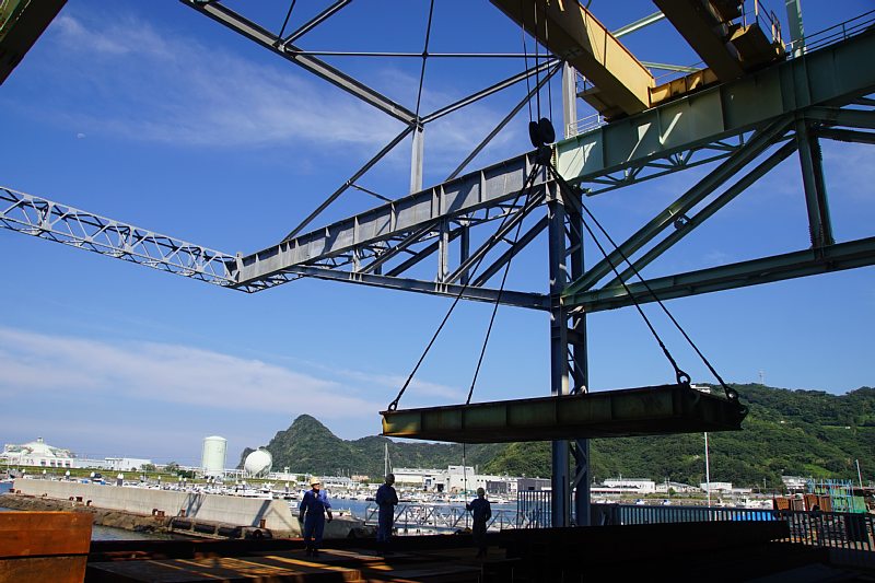 また海に面した立地条件を生かし、海上オーバーハングクレーンを使って、大型構造物を工場から直接船積みが可能です。